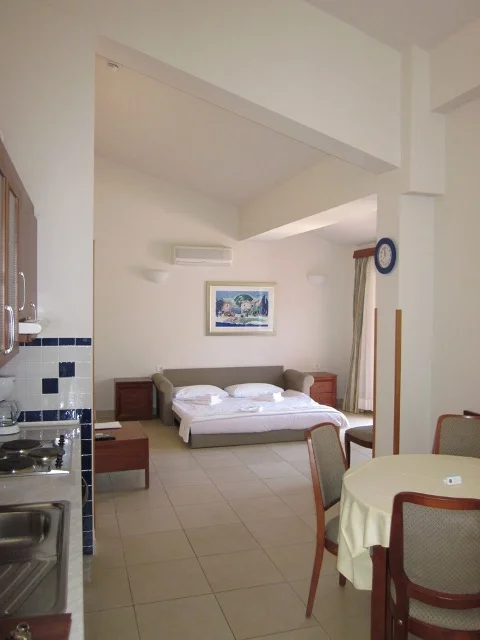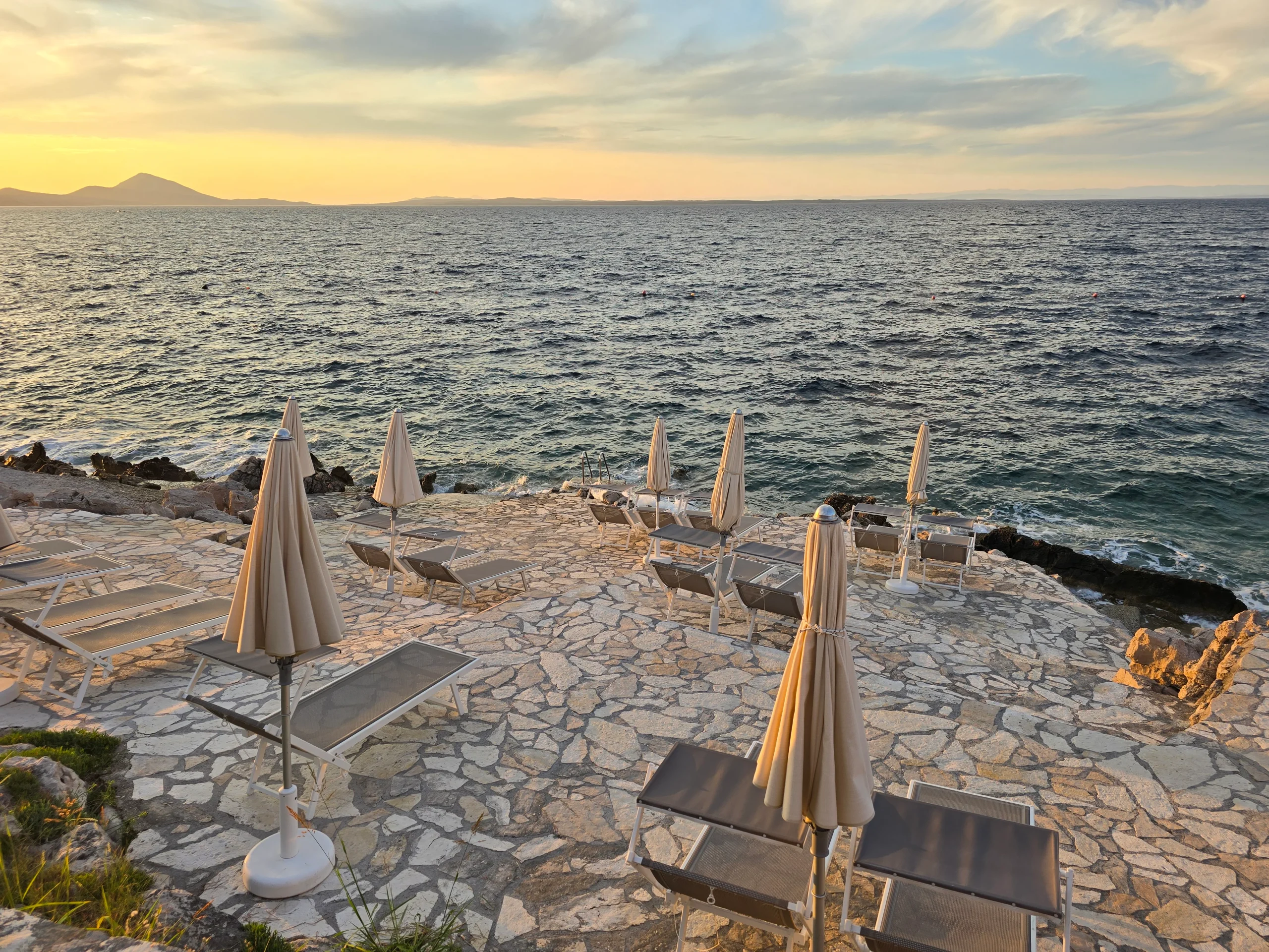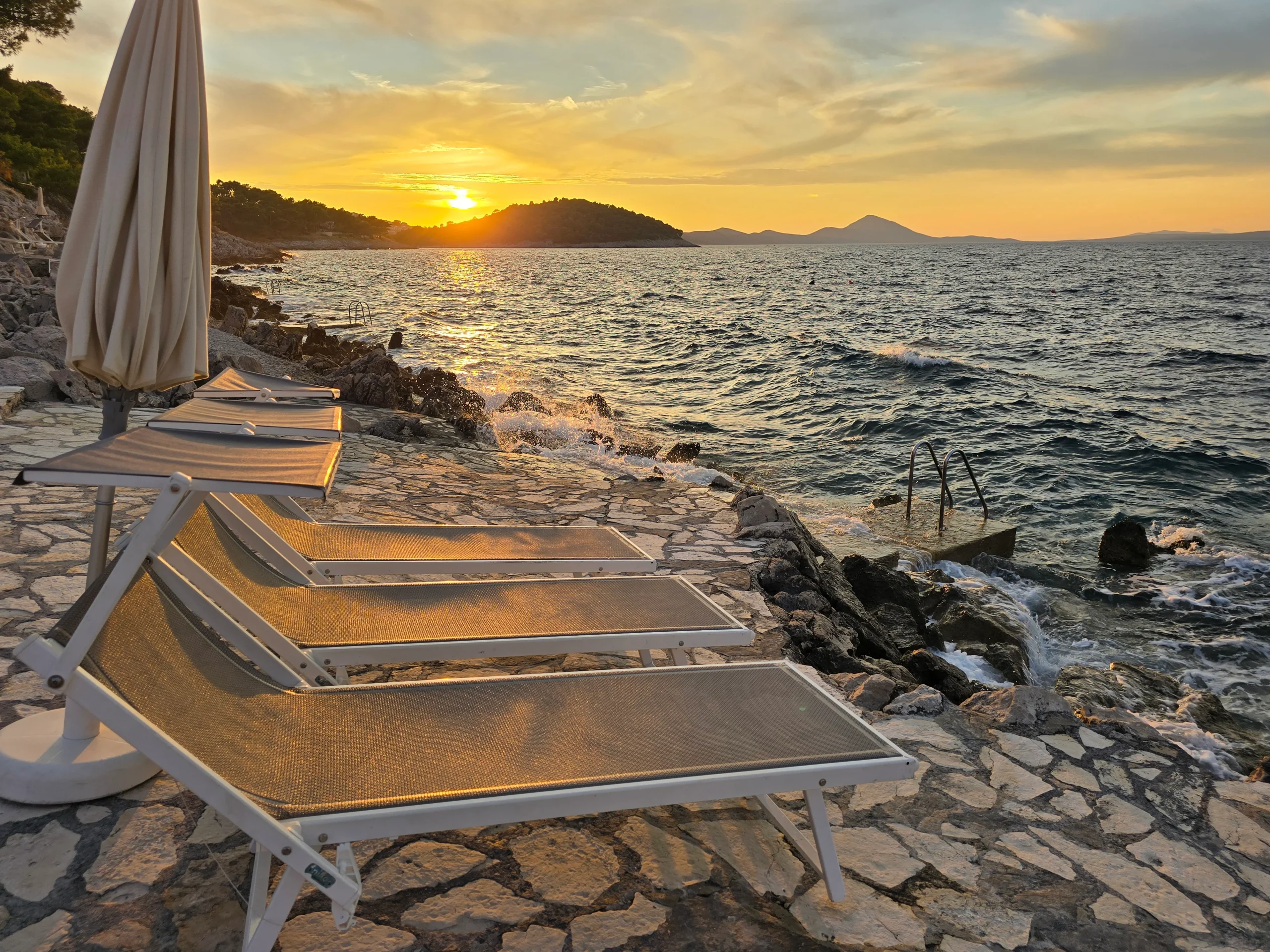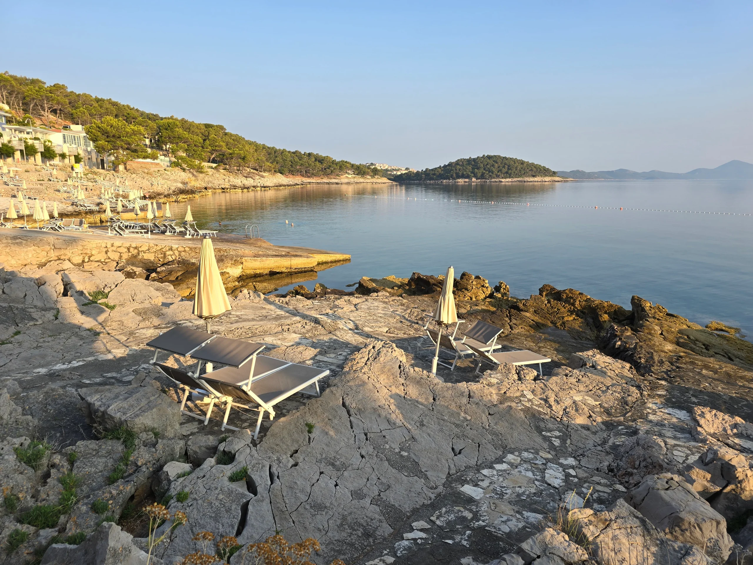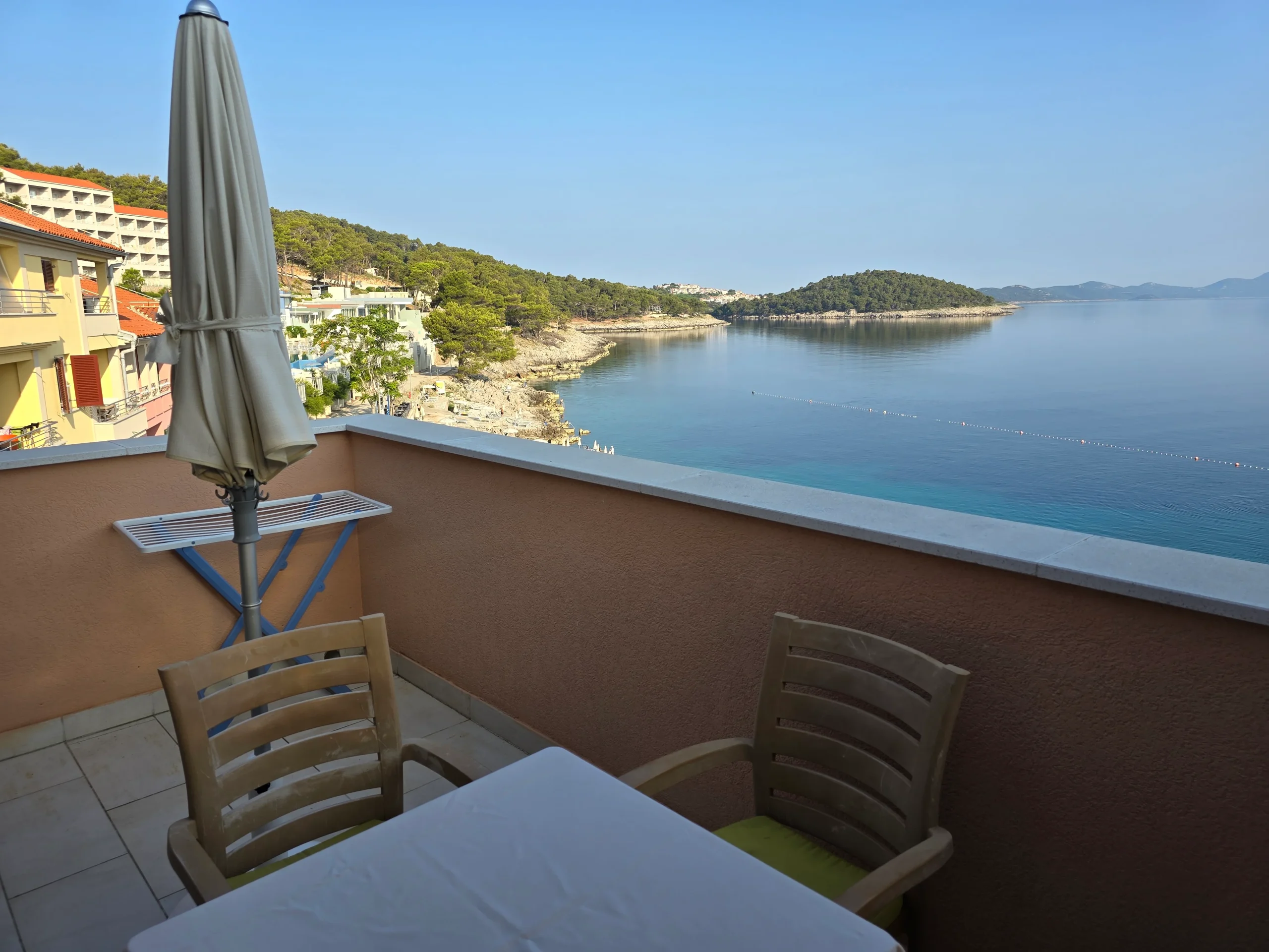 It features a large open-plan living area with a kitchen and a spacious living room. And the highlight – a private balcony offering stunning sea views, perfect for enjoying your morning coffee or relaxing at sunset. The beach is rocky but has flat areas that are perfect for comfortable resting.